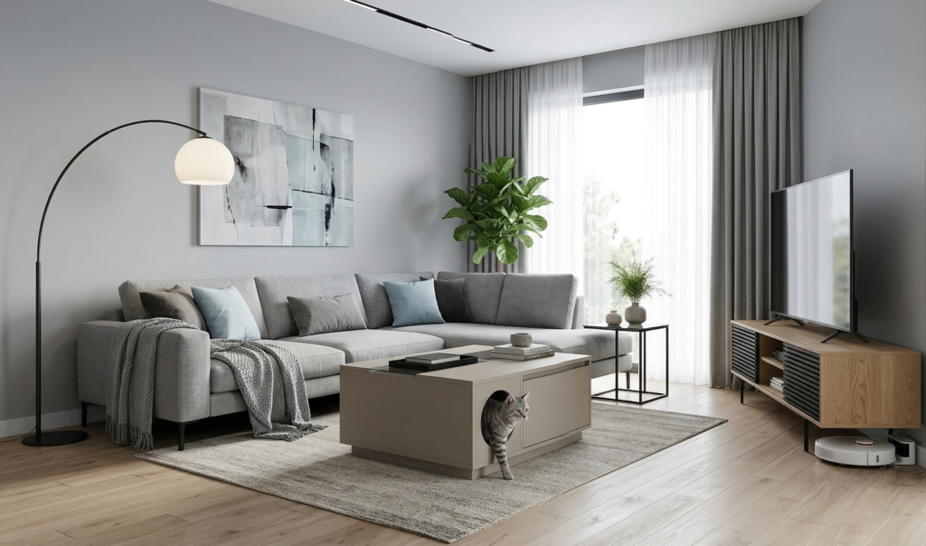Heykelsi kedi kulesi — 2 katlı platform, jüt sarımlı dikme